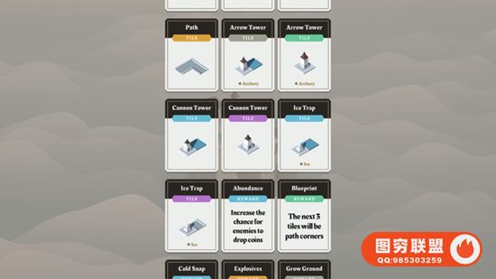 每一回合,你需要将随机掉落的板块放置到岛屿上,花费金币能让你跳过 某个板块。准备就绪后,开始下一波敌人进攻,观察你放置的防御工事的 实际效果。