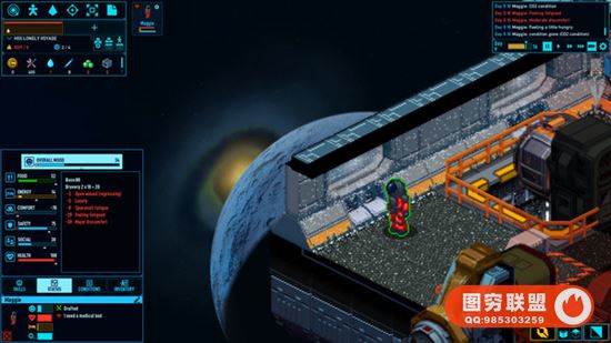 情绪 - 快乐的船员需要食物、睡眠、舒适度、安全感和朋友。少了任何一样,他们的情绪都会受到影响。