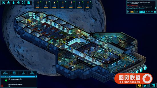 以等距方块拼贴而成的气体系统可以模拟飞船上的各种气体、温度和船员舒适度。人类、植物和设施会对其周围环境做出反应,从而为你设计的飞船和你创造的生活条件赋予意义。请确保设施安全,优化船员的生存水平和福祉,但同时也要考虑到未来可能发生的事故,以及船员战斗或环境危害造成的混乱。