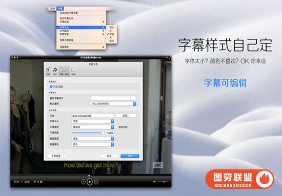 * 支持的字幕格式: SubRip(.srt), Sub Station Alpha(.ssa, .ass), SAMI(.smi), VobSub(.idx/.sub), MPL2...