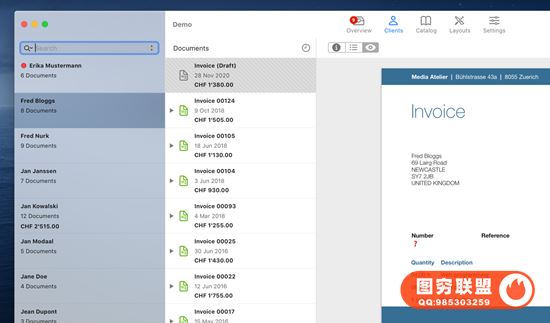 GrandTotal是一款轻量级,直观且可靠的macOS应用程序,从一开始就为您提供使用Mac为客户创建发票和预算所需的所有工具。