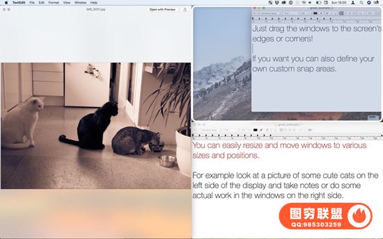 BetterSnapTool允许您轻松导航窗口和/或将其拖动到一个角落或屏幕的顶部,左侧或右侧。这使您可以轻松地最大化窗口,并排放置它们,甚至可以将它们调整到屏幕的四分之一。
