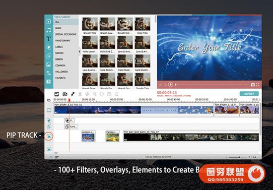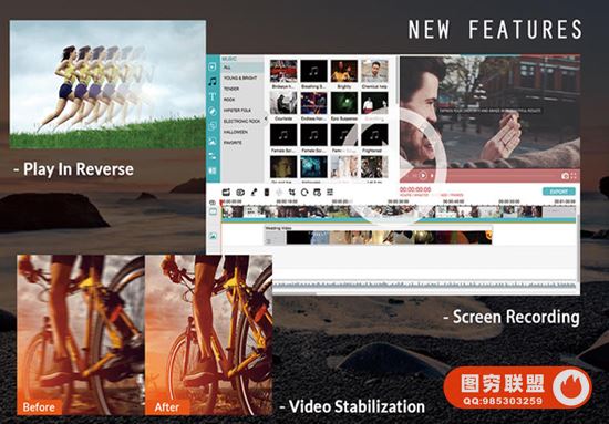 使用丰富的过滤器,标题,转场和动作修饰视频和照片。
