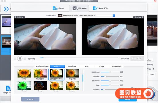 旋转。 鱼眼校正。 加水印。 视频到gif,PNG。