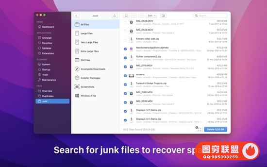 - 自动检测移动到废纸篓的应用程序并删除其相关文件