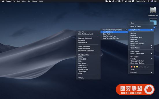 Easy New File提供Mac系统一个右键菜单,可以方便新建各类文档,支持所有常见的文件扩展名,如文本文件,word文档,excel,keynote,richText文档,shell,Python脚本,Swift等等,您甚至可以自定义新建文档类型。Easy New File还提供复制文件路径,快速打开终端等功能。