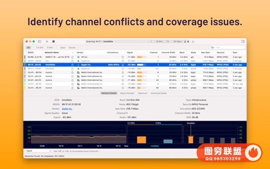 图穷联盟苹果网 » WiFi Explorer 3.5.1 扫描,监视和排除无线网络故障