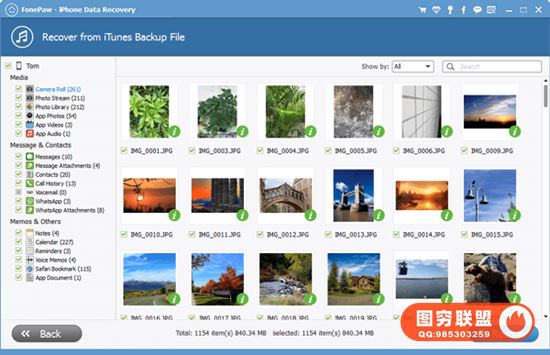 - 从iTunes备份和iCloud备份中恢复数据此实用程序还可以从不可读的iTunes备份文件中提取数据,这在iPhone被盗/丢失时非常有用。