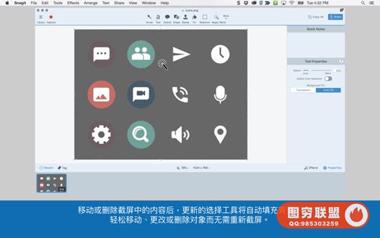 TechSmith Snagit 为用户提供了以视觉方式交流思想、提供反馈和创建共享内容的工具。利用 Snagit 的编辑工具,用户可以轻松地截屏并进行自定义。用户可选择多种标注和戳记,以生动有效的方式进行高效率的交流。用户还可以录制屏幕或网络摄像头,从而创建简要教程、课程或演示。利用 TechSmith Snagit 的各种输出项可以方便地共享创建的内容。