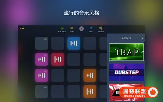 用循环集锦歌制作专业音乐。这个应用程序是一个强大的采样器,有大量的循环和预置。