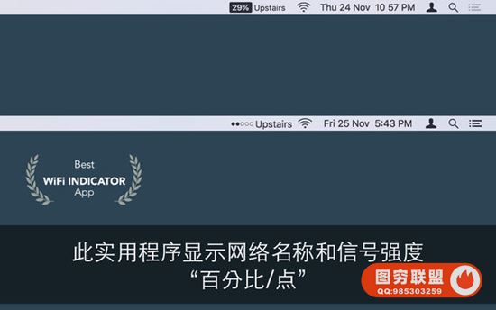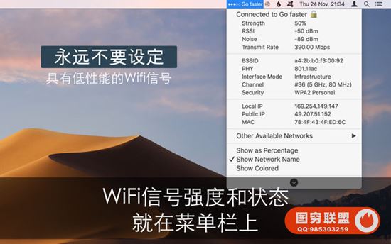 ■菜单栏中的实时Wifi信号强度监视器。