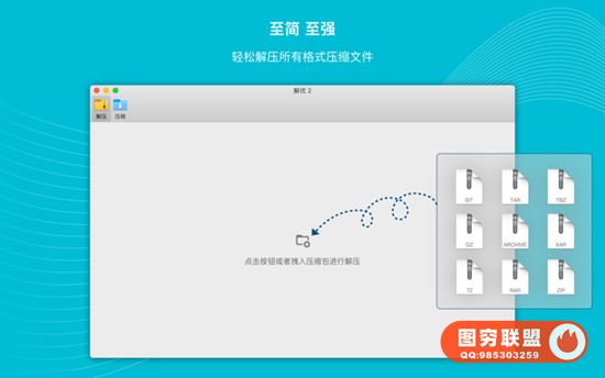 您可以拖动文件到“解优 2”图标进行解压,也可以设置“解优 2”为压缩包的默认打开方式后鼠标双击进行解压。