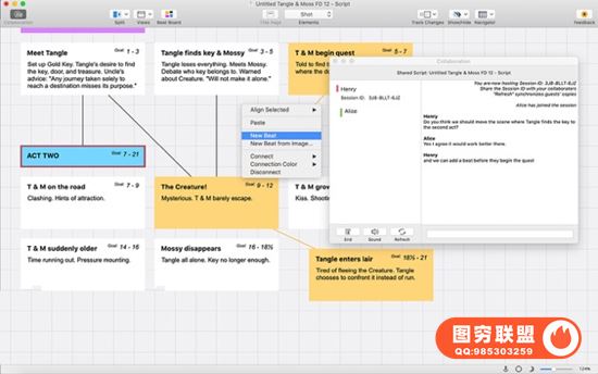 *高级头脑风暴 - 我们的动态写作环境让您以前所未有的方式可视化角色和场景。新的 Flow Lines 允许您连接节拍,而新的 Outline Elements & Outline Editor 工具让您可以鸟瞰您的剧本,并让您将您的大纲直接发送到您的脚本以便于访问。