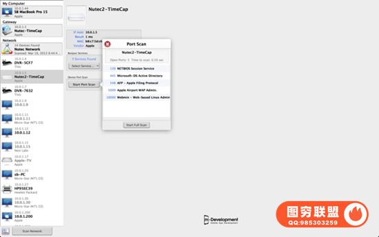 收集的所有信息都在一个易于理解的用户界面中呈现给用户,包括已知 MAC 地址、常用端口地址和许多 bonjour 服务的字典查找。 此应用程序旨在让用户全面了解连接到本地网络的所有设备以及它们正在运行的网络服务。