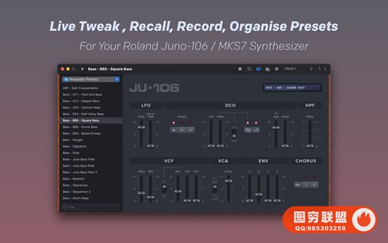 JU-106编辑器允许您通过MIDI接口管理、加载和保存您的Juno-106/MKS7合成器的预设。