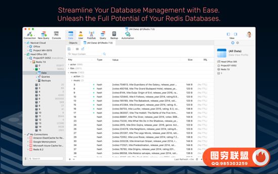 Navicat for Redis 是一个易于使用的界面,用于可视化和优化 Redis 数据。与仅使用文本命令相比,它提供了一个组强大的功能,可以使常规管理任务变得更简单、更容易、更高效。它能连接到任何本地或远程 Redis 服务器,并与云数据库兼容,如 Redis Enterprise Cloud、Amazon ElastiCache 和 Microsoft Azure。