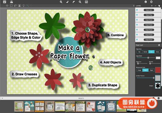 重点放在易用性上,可以通过在图像或背景上自由绘制来创建撕开的碎片 - 如果太多被撕掉,只需反转工具并将该区域重新添加即可。此外,应用中包含的图像工具可以让照片在裁片内被调整大小或旋转;或者您可以选择在保留形状的情况下完全替换图像。这个强大的功能使专业人士可以创建自定义模板以供将来使用,并允许项目与其他艺术家共享。
